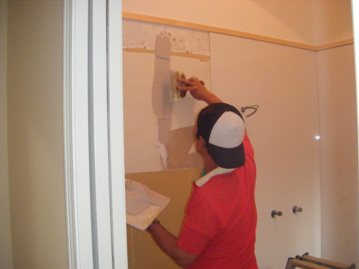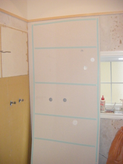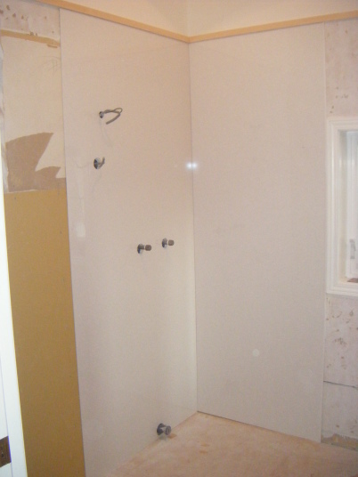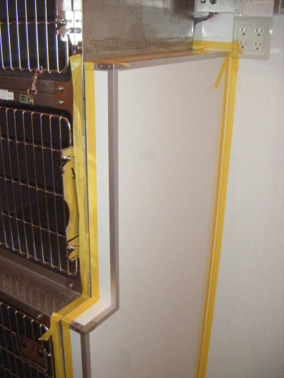 ヒーター内臓のケージを水から保護するためにシンク廻りはすべてパネル施工にしました。