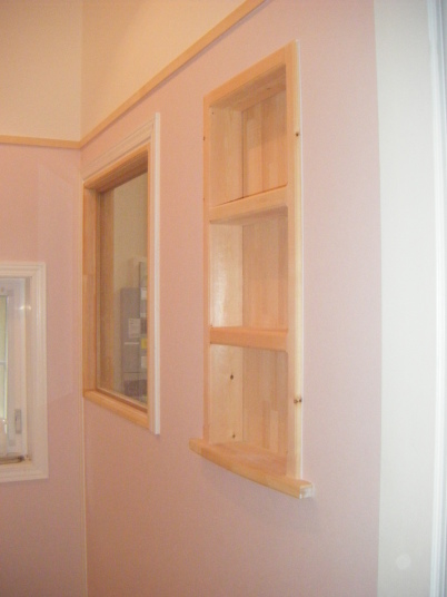 外部より観察出来るための窓を設置、室内のニッチには小物なども置けるようになりました。