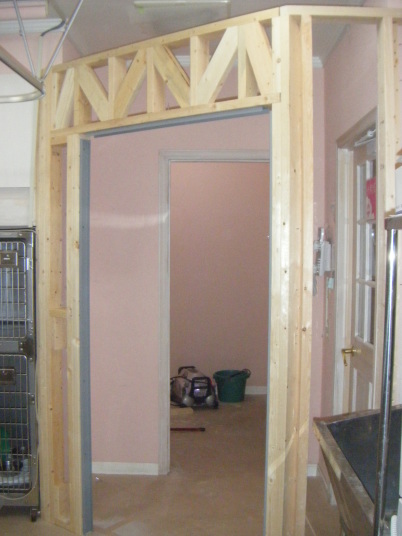 既存の2部屋を1つに繋げ新規レントゲン室を施工しました。
