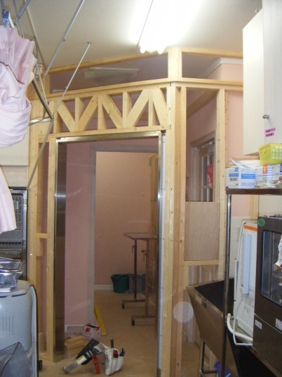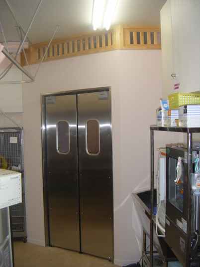 2つの入口を1つにしてスイングドアを設置(ALLステンレス製)