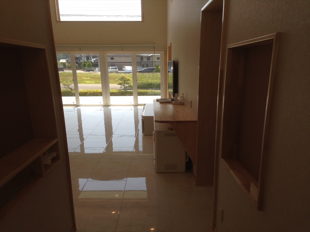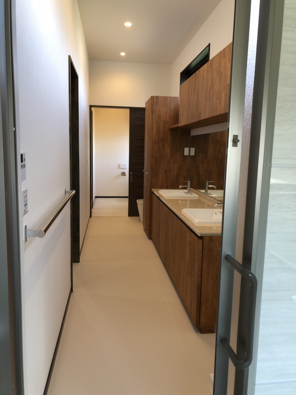 タイルは滑りどめ付300×300に色調を合わせて変更。