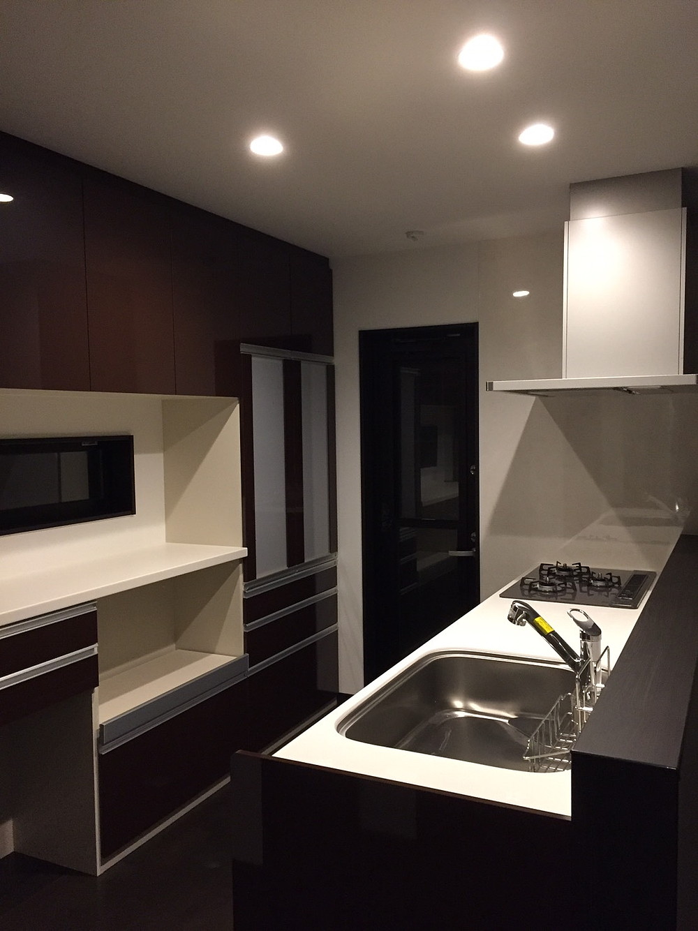 玄関上部はLEDのダウンライト変更(人感センサー付)。