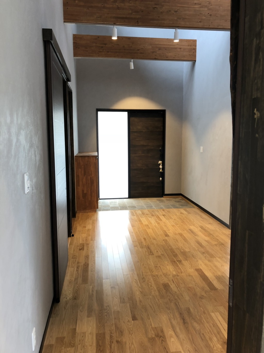 玄関廻りの木製ドアを新設して生活スタイルに合わせた引き戸にしました。