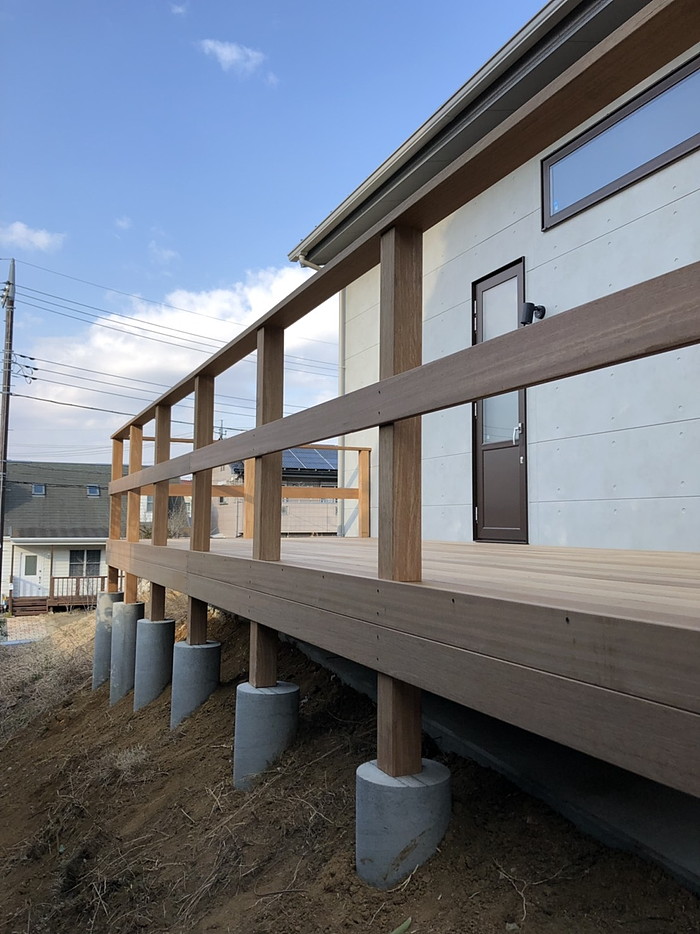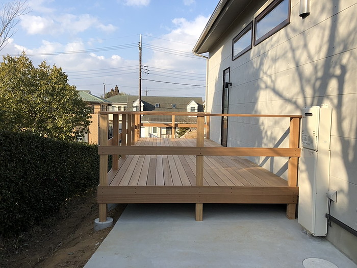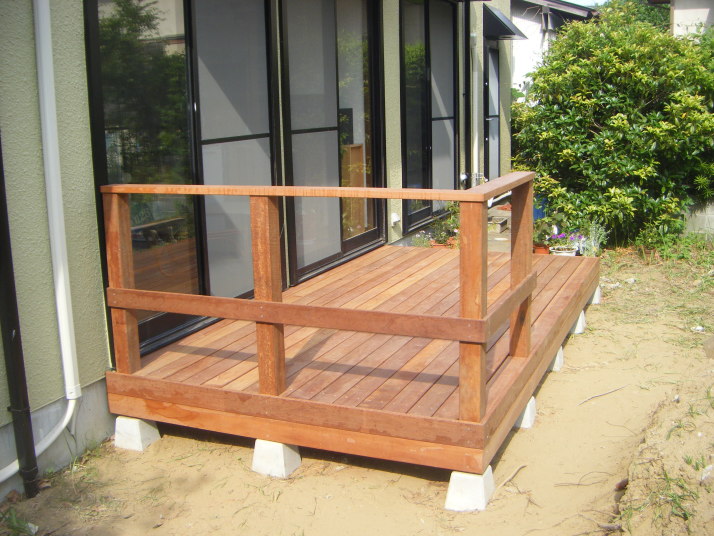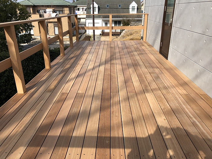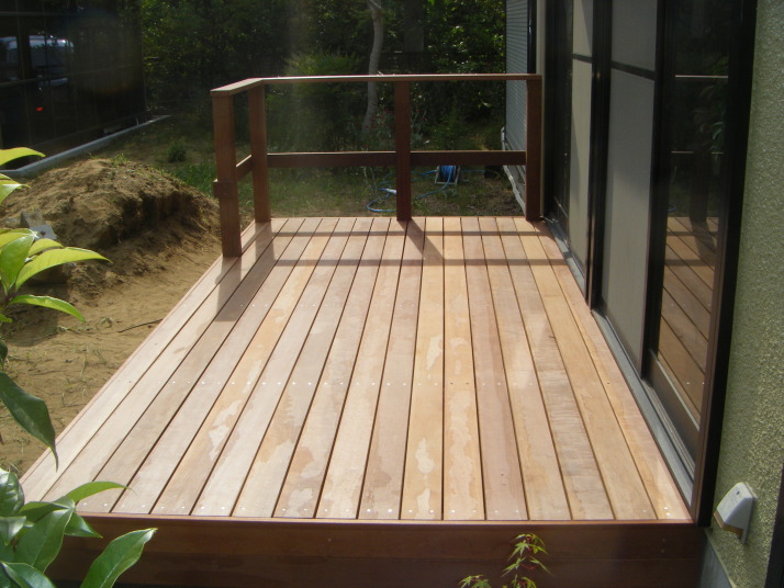 アクアラインの屋外デッキや東京ディズニーシーの船の甲板などに使用されている(イぺ)と同質の硬木を使用しています。ノーメンテナンスで耐久性が高い事 が特徴です。名前の通り雨にさらされると紅色に変化し(写真右端)、長期間の使用で徐々に白っぽくなり味わい深い色になります。